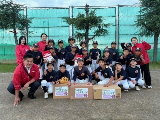マルハン青森下田店が三沢小学校の野球部に端玉の寄付へ行ってきました。