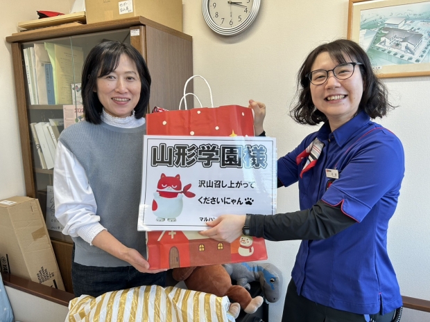 マルハン宮町店が「山形学園」様に端玉賞品の寄付をさせていただきました。