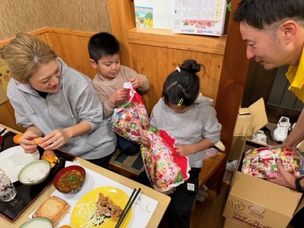 マルハン新守山駅前店がお客様が寄付してくださった端玉景品のお菓子を子ども食堂「心の子どもごはん」様へお届けしました。