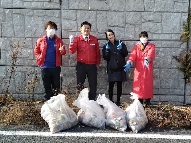 マルハン中津店スタッフが店舗周辺バイパス入口付近のゴミを拾いました。