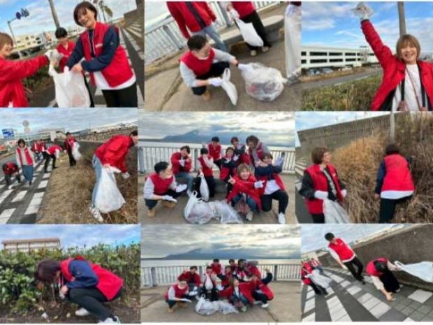 マルハン鹿児島新港店スタッフが3月1日に開催された「鹿児島マラソン」でランナーが気持ちよく走って頂けるよう、清掃活動を行いました。