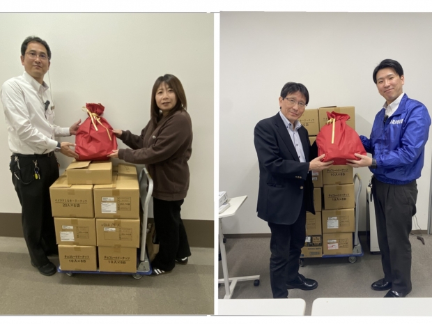 マルハン新大蔵谷店が「ハグラボ」様、「兵庫県青少年本部」様へお客様よりご寄付いただいたお菓子を寄贈させて頂きました。
