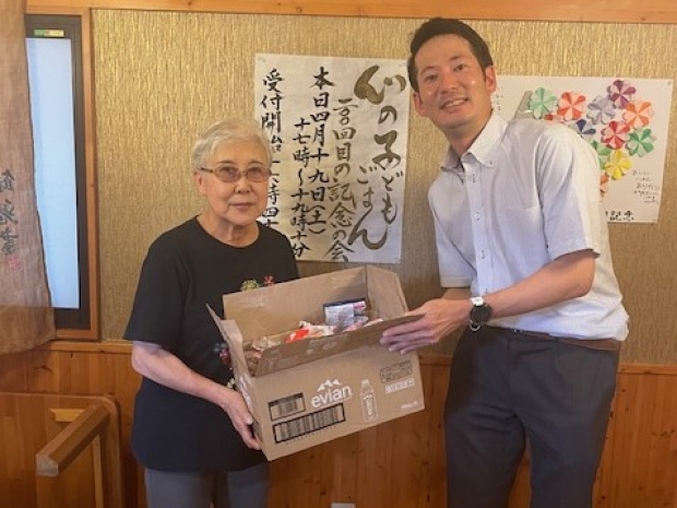 マルハン新守山駅前店がお客様が寄付してくださった端玉景品のお菓子とファン感謝デーの余り景品を守山区の子ども食堂「心の子どもごはん」様へお届けしました。