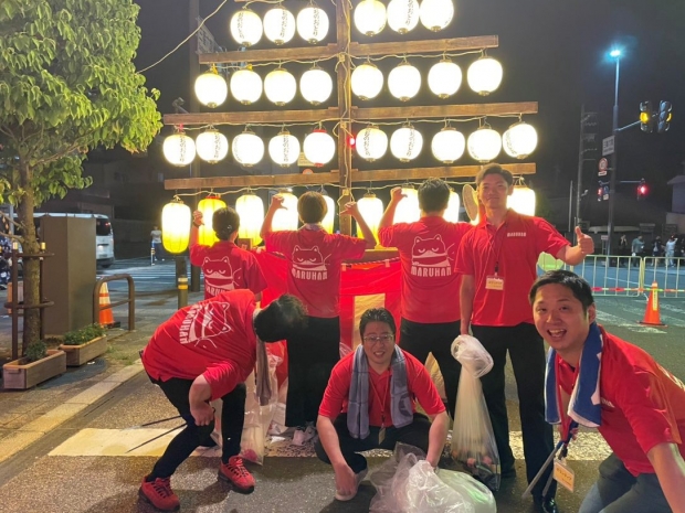 マルハン大野店スタッフが「おおの城まつり」にボランティアとして参加し、盆踊り・うちわ配布・ゴミ拾いを行いました。