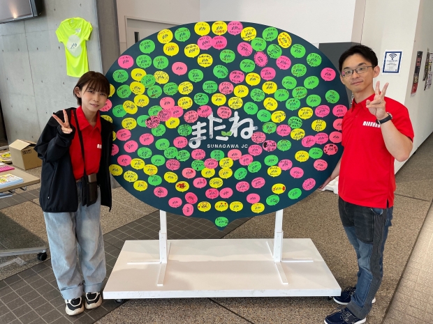 またね祭は、一般社団法人砂川青年会議所主催のお祭りで、『 ―さよならじゃない、「またね」でつながるまち。―旅立つ人も、訪れる人も、また帰りたくなる。「またね」の想いでつないでいく。これからも元気な砂川へ』をテーマとする地域の市民・企業が協力し、子供から大人まで楽しめる地域活性イベントです。