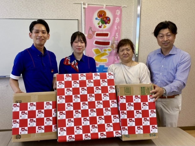 マルハン福井大和田店が「こども食堂なないろてんとうむし」様に端玉菓子ファン感あまりの賞品の寄付を致しました。