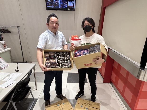 マルハン静内店がお客様のご厚意で寄付して頂いた端玉菓子を「北海暁星学院」様へ寄付菓子としてお渡し致しました。
