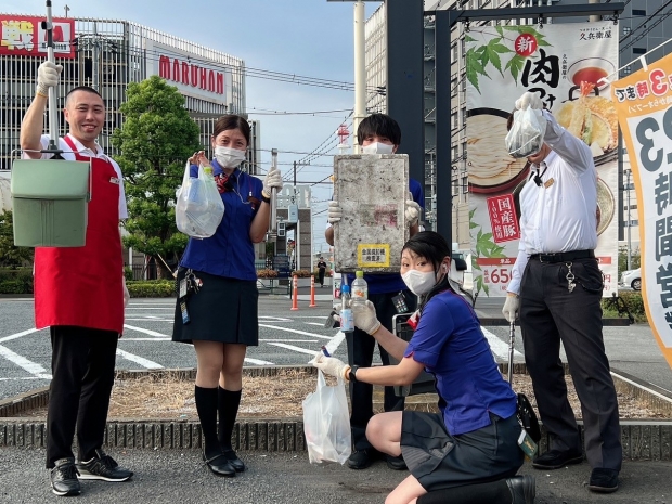 マルハン青梅新町店スタッフがいつもお世話になっている店舗周辺のセブンイレブン様と久兵衛様の店舗周辺の清掃をさせて頂きました。