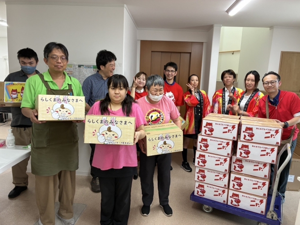 マルハン厚木店と厚木北店、グランドオータ厚木店のスタッフが「工房らしくま」様に寄付菓子をお届けにいきました。