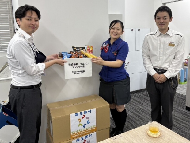 マルハンプレンティ店が「神戸市西区社会福祉協議会」様にお客様から頂いた端玉のお菓子を寄付して参りました。