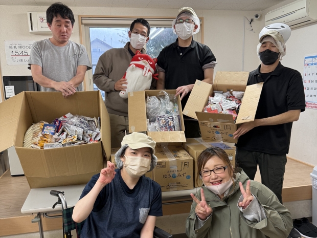 マルハン北見店と端野店がお客様が寄付してくださった端玉のお菓子を「とむての森様にお渡ししました。