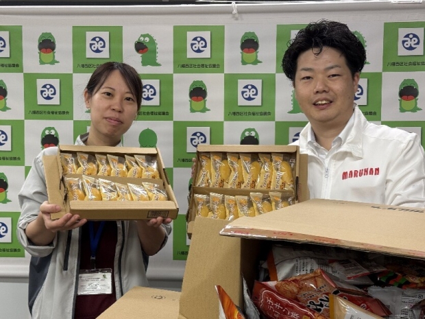 マルハン本城店がお客様からお預かりした端玉のお菓子を「八幡西区社会福祉協議会」へ寄贈致しました。