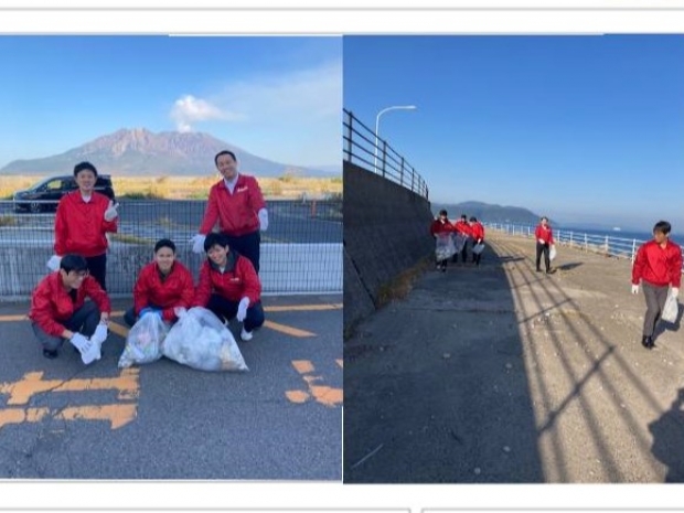 マルハン鹿児島新港店スタッフが店舗前の海沿いを清掃しました。