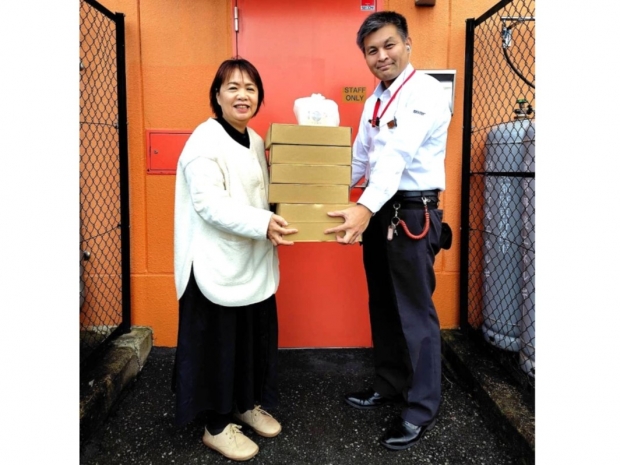 マルハン峰山店が「ゆるりら」様へお客様よりご寄付いただいたお菓子を寄贈させて頂きました。