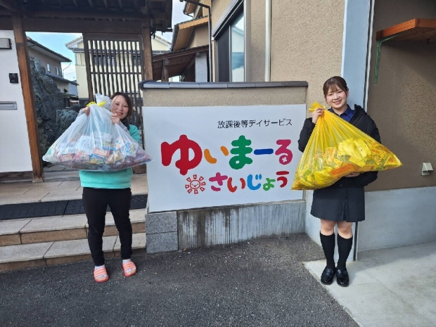 マルハン西条店がお客様より寄付していただいた端玉のお菓子を「ゆいまーるさいじょう」様へお届けに行ってきました。