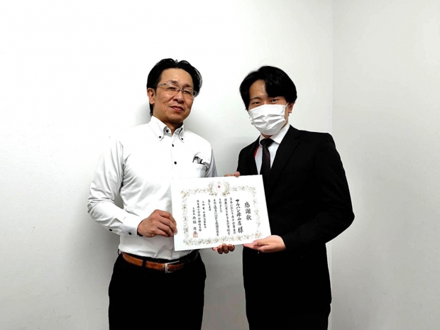 マルハン峰山店が実施している献血活動が10年になり、「日本赤十字社」より感謝状をいただきました。